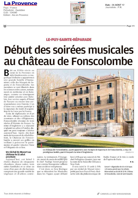 Article VAR MATIN Jazz et vin Michel Pellegrino Quartet au Château Maravenne(83)
